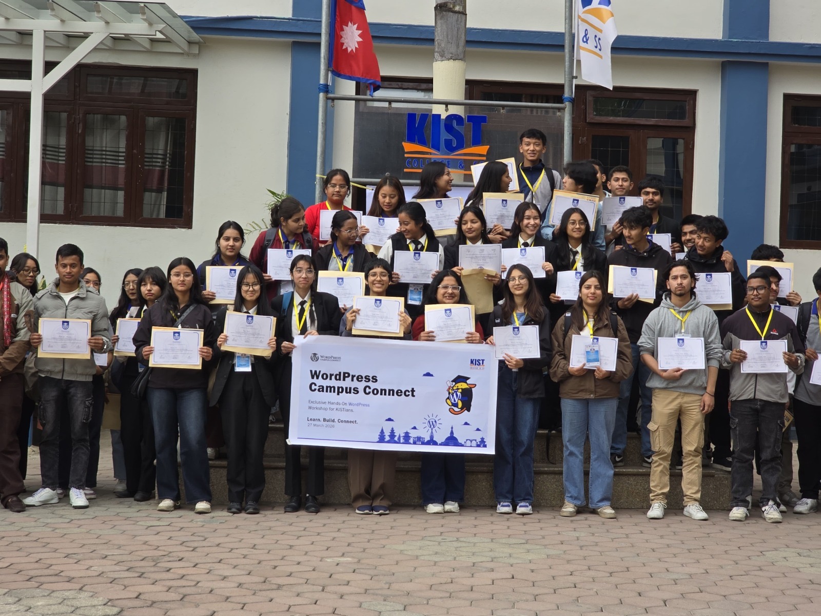 KIST College successfully organized the WordPress Campus Connect 2026 program, bringing together enthusiastic participants from +2, BIT, BITM, and MIT programs who were eager to explore the world of website development using WordPress. The session introduced students to the fundamentals of WordPress, including how websites are built, the role of themes and plugins, and the opportunities available in the WordPress ecosystem for freelancers, developers, and digital creators. The orientation was delivered by Utsav Singh Rathour from Code Pixelz Media, while the workshop sessions were facilitated by Santosh Kunwar from AcmeIT and Saroj Khanal from Websitepasal, who guided participants through practical insights and shared valuable industry perspectives. Through the program, students gained a clearer understanding of how WordPress powers millions of websites worldwide and how they can begin their journey in web development and the digital industry.