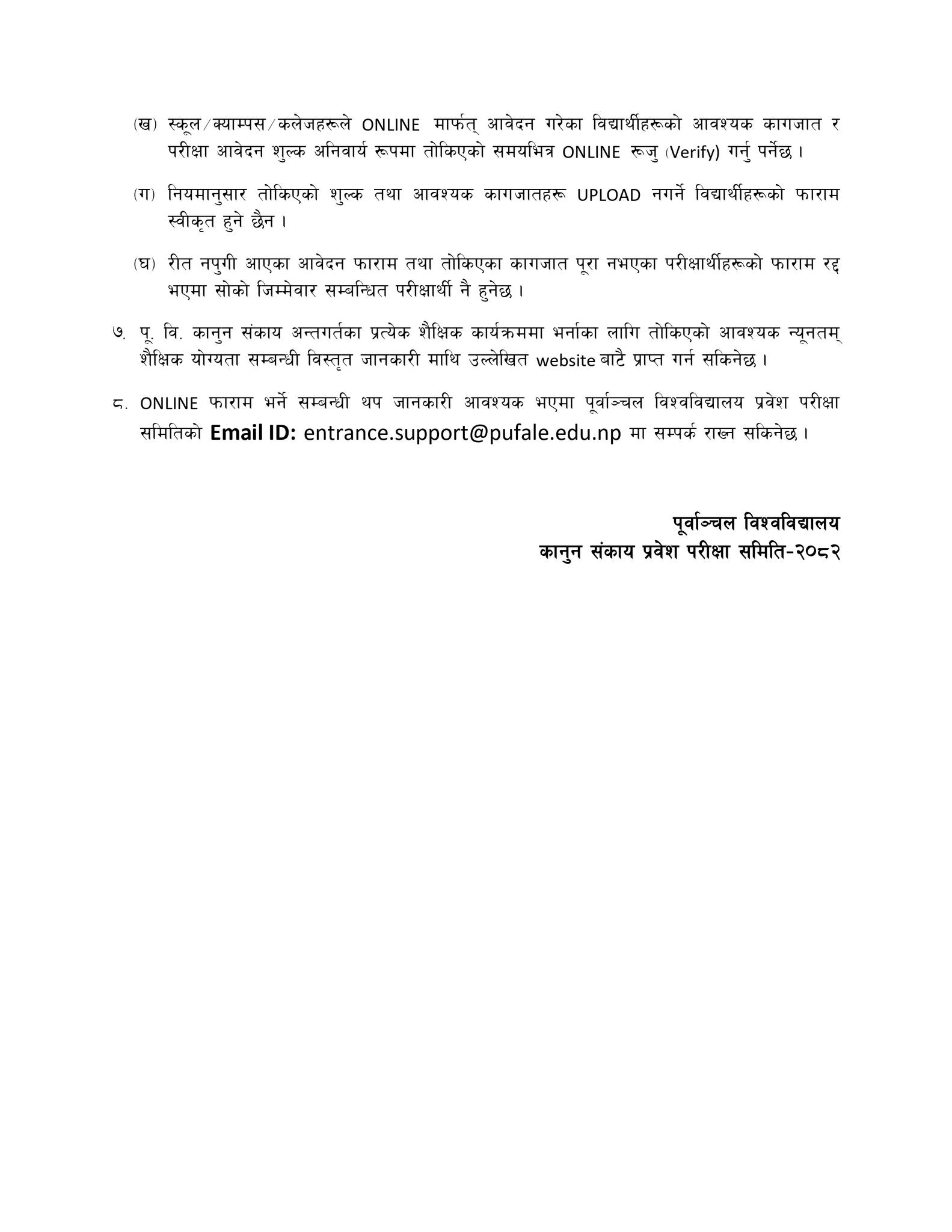 For any queries related to the online application form or required documents, applicants may contact the Purbanchal University Entrance Examination Committee at: