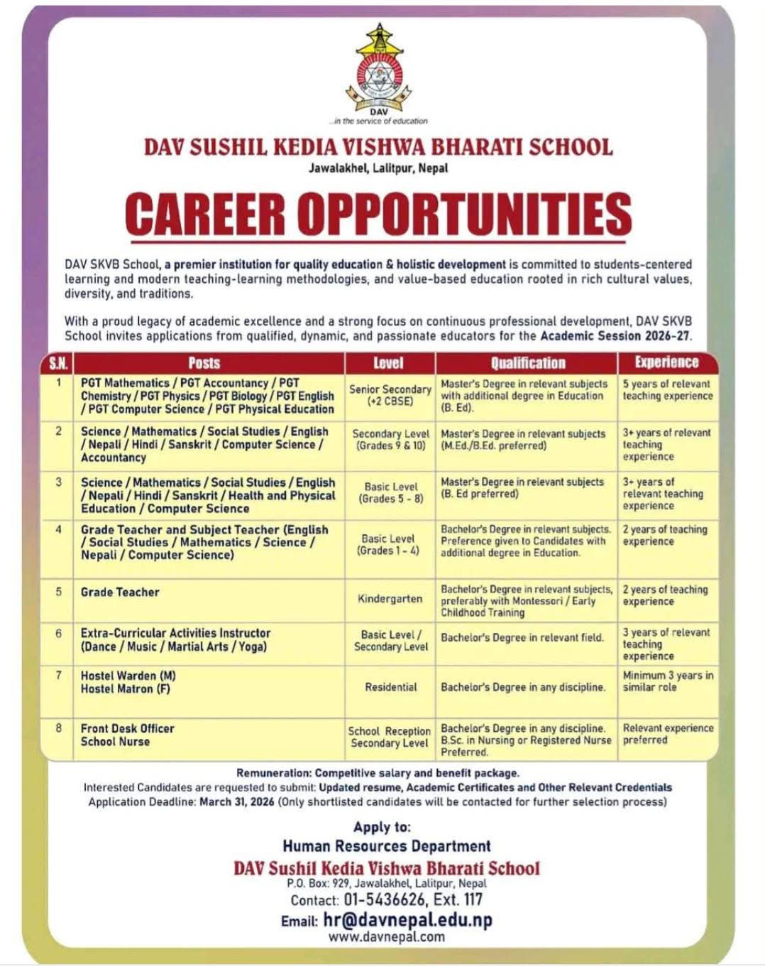 Email: hr@davnepal.edu.np www.davnepal.com